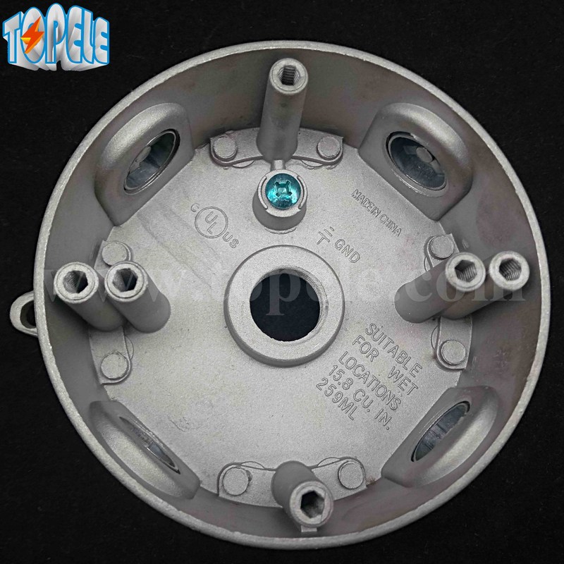 4 " ডাই কাস্ট অ্যালুমিনিয়াম রাউন্ড আবহাওয়া প্রতিরোধী বৈদ্যুতিক আউটলেট বক্স / এক্সটেনশন রিং